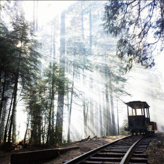 Enjoy the rustic feeling in an open air Logger or Train car as we travel on the original 3ft narrow gauge railroad tracks and learn about the amazing history on a narrated tour by our conductor as we wind our way down to the performance venue. VIP private Caboose passages are also available by prior arrangement.